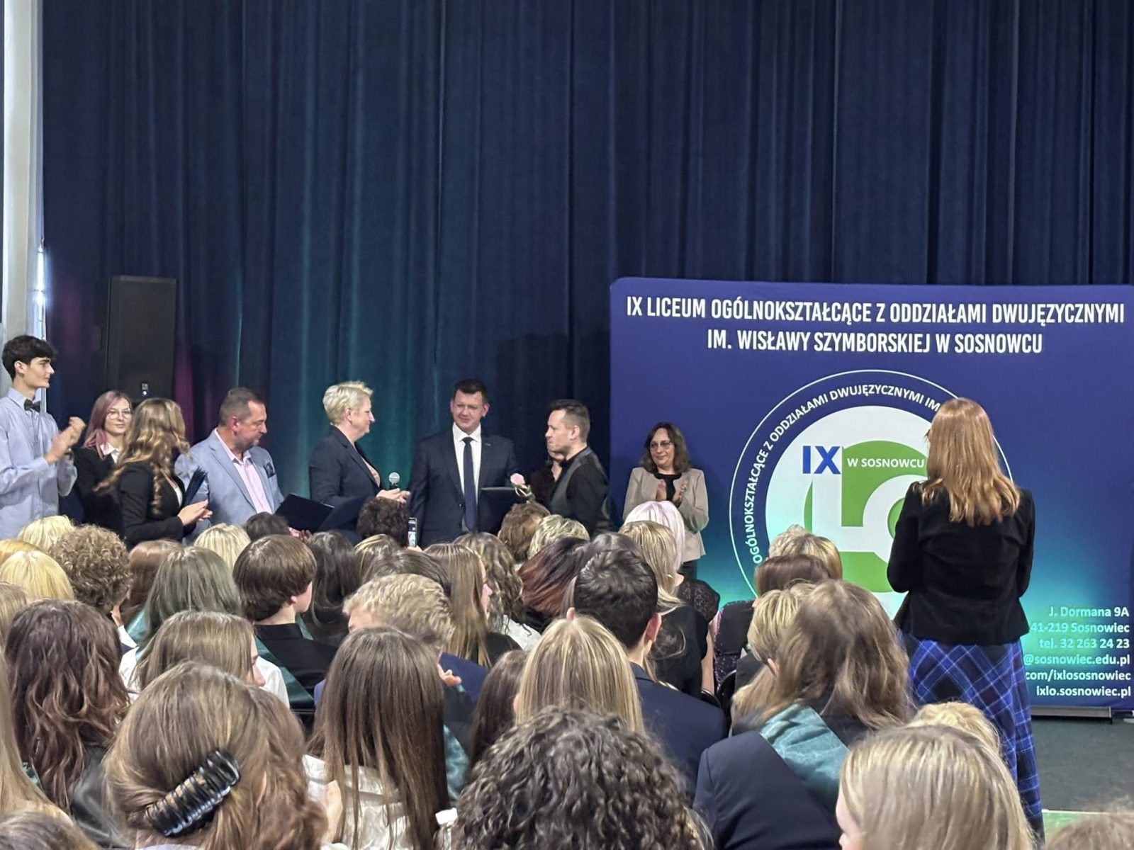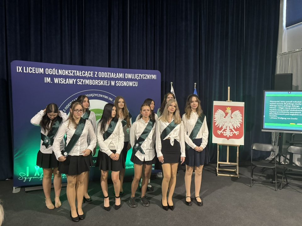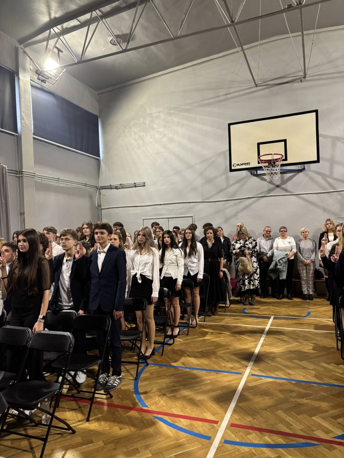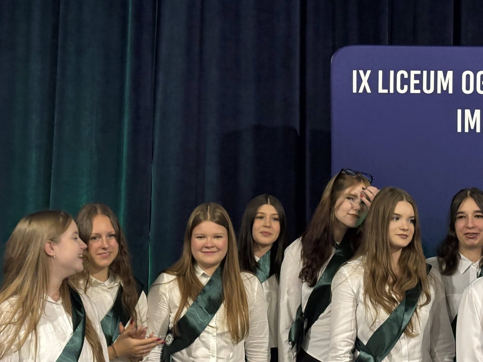 Uroczystość rozpoczęła się wspaniałym występem uczniów, pełnym radości, muzyki i wzruszeń. Pierwszoklasiści złożyli uroczyste ślubowanie i zostali symbolicznie pasowani na uczniów IX Liceum Ogólnokształcącego.To właśnie od tego momentu stali się pełnoprawnymi członkami szkolnej rodziny!