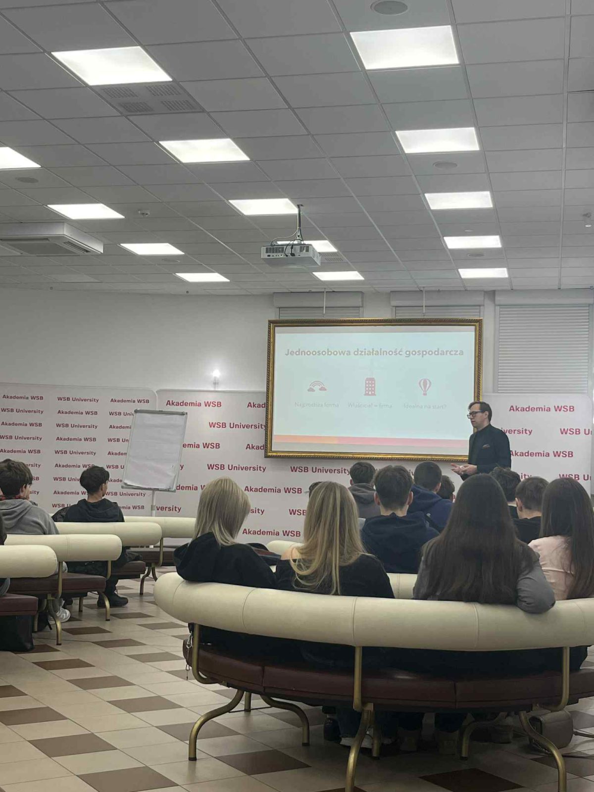 Podczas spotkania poruszono m.in. temat wyboru najlepszej formy prowadzenia firmy – omówiono ich plusy i minusy, praktyczne konsekwencje oraz realne korzyści dla młodych przedsiębiorców. Dla wielu uczniów była to wiedza, która dosłownie otworzyła oczy na to, jak wygląda prowadzenie biznesu w praktyce.