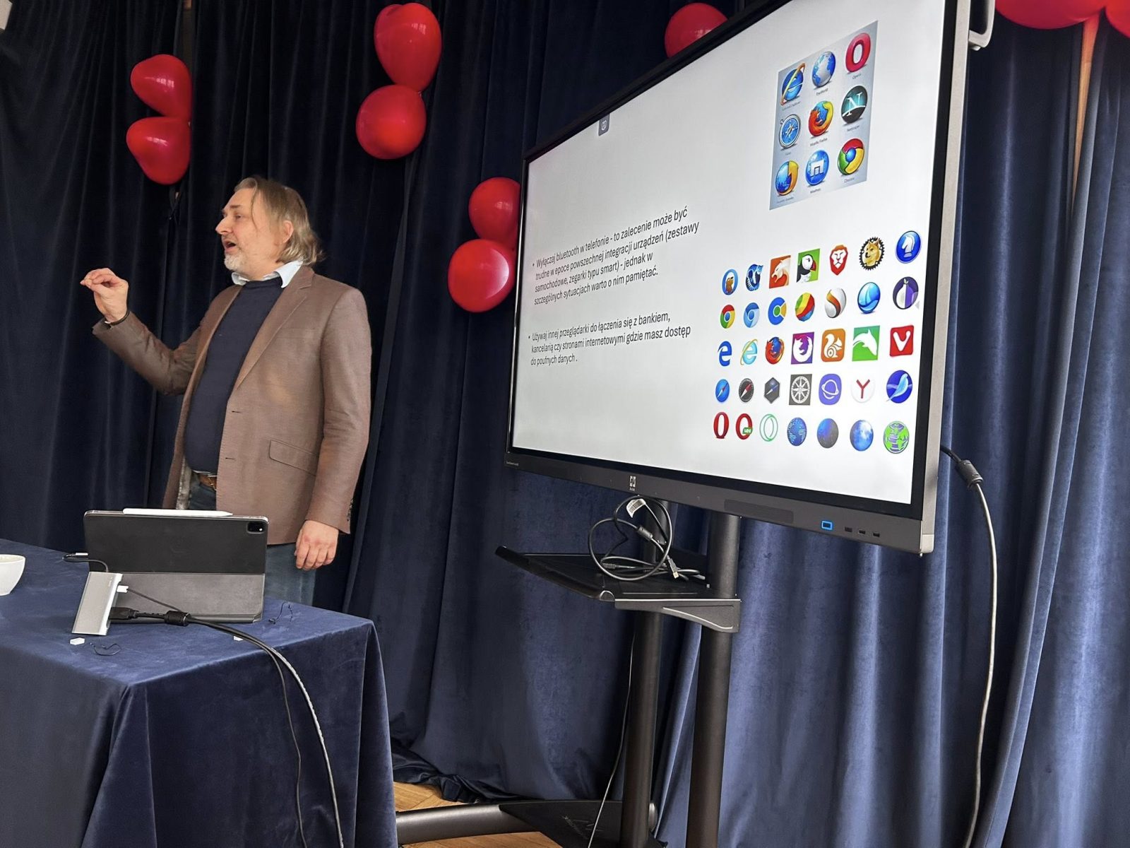 Wykład był nie tylko solidną dawką wiedzy, ale także inspiracją do odpowiedzialnego i świadomego funkcjonowania w świecie cyfrowym. Dziękujemy Panu Profesorowi za cenne wskazówki oraz zaangażowanie, a uczniom za aktywny udział i ciekawe pytania!